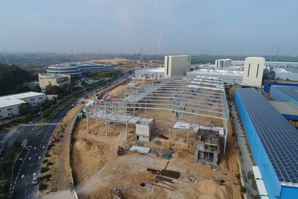 מפעל ומרכז לוגיסטי של חברת פלקסטרוניקס העולמית בניה משולבת אלמנטים טרומים בניה קונבנציונלית קונסטרוקציית פלדה ורצפה מדוייקת.