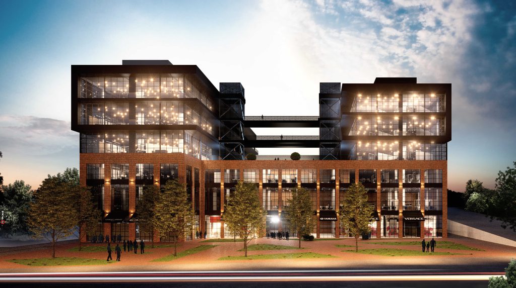 מבנה מעורב שימושים: מסחר, תעשיה, אחסנה ומשרדים, בן 6 קומות מעל קומת מרתף, בשטח של כ-30,000 מ"ר.